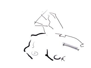 Sketch first drawn of nude model, using QuickTime movies for on-screen reference, upon which were layered objects and sounds using Adobe PhotoShop, Premiere, Illustrator, Macromedia Director and SoundEdit Pro.