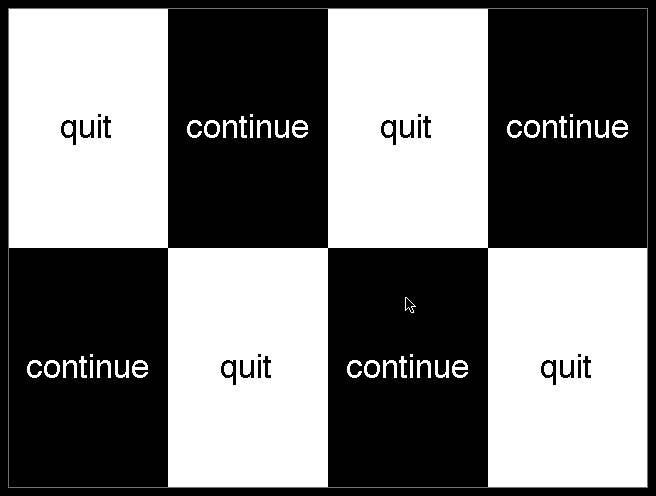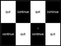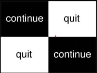 "Although we are dealing apparently with branches (the subdivisions of the options), it is in fact a one-way street: we can only start over from the beginning, again and again, and the route we follow will always be exactly the same. Continue makes no attempt to fool us into believing in the false infinities the hype surrounding the CD-ROM would have us believe in. Continue takes us to the other end, or, if one chooses, the beginning: to the binary code degree zero." (Astrid Sommer)