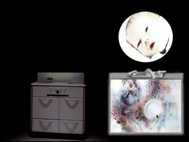 a kitchen sink filled with animated bubbles. Sculpturally, the viewer looks