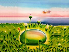 "Three Small Fantasies" is the picture book without words. It uses the three colors of a computer display, resulting in story themes of "red," "green," and "blue."