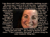 The young woman's stories are divided into over one hundred short moments. The order she tells them is determined randomly. Our desire to pull meaning from the whole interferes with an awareness that the pieces follow each other arbitrarily. The encounter both portrays and reproduces the uncertainty of memory. Her desire to find truth infects the participant's desire to comprehend. Where traditional media transform memory into nostalgia, we are discovering what interactive media will manufacture from our desire.
