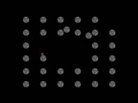 The user interface composed of grey reels revolving against a black background is subject to minimal optical variation in the course of the game: reels change their direction of rotation, vanish, and then re-appear or swap places with each other. To indicate that a complete sentence has been produced, four tapes are joined up to form a unit. Due to its sign-like character, the surface image is a field of orientation in the process of the game. On the other hand, its permanent uniformity and the constant rotation of all individual elements makes it an optical trance field of non-information." (Anja Wiese)